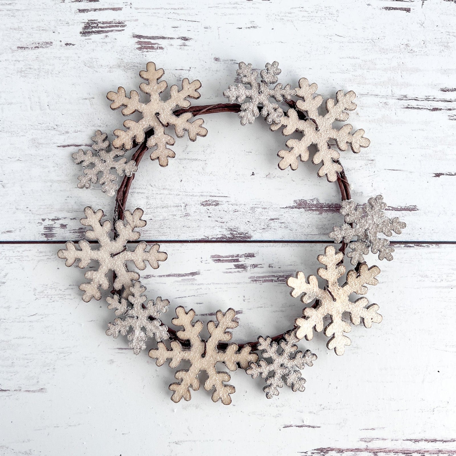 Frosty Wooden Snowflake Candle Ring / Wreath 4.5" Inner Diameter