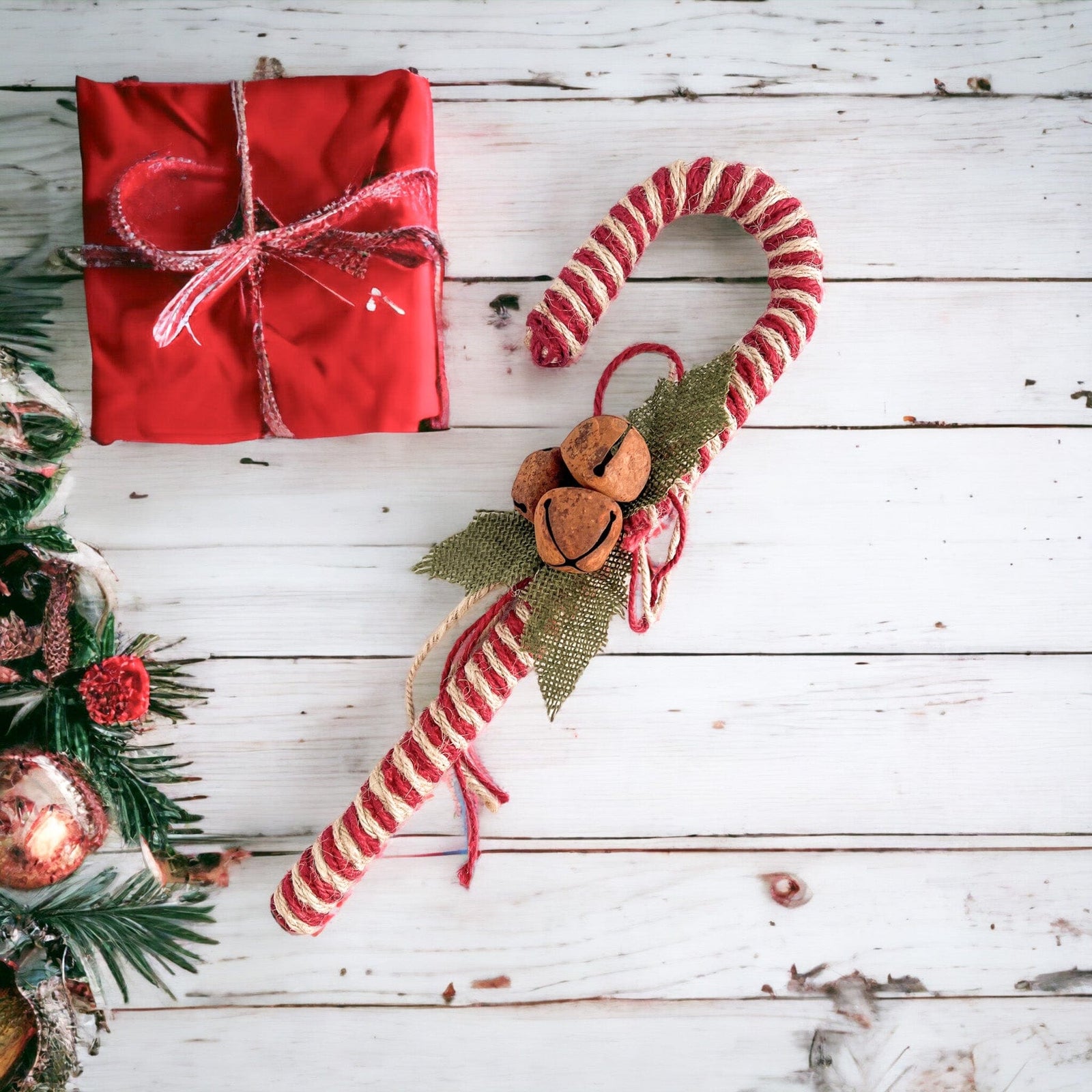 Red & Tan Jute Large Candy Cane Christmas Decoration 14" Long