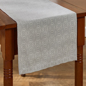 Elevate your table with understated elegance-this light gray woven runner features a subtle geometric pattern in soft, tonal shades that add texture without overwhelming your space. The intricate design brings a quiet sophistication to wood surfaces, making it perfect for everyday meals, intimate gatherings, or seasonal decor with a modern twist. Whether you're layering it with candles or letting it shine solo, this runner blends seamlessly into both classic and contemporary settings. Pair with other coordinating table linens in our collection to create a look that's refined, versatile, and effortlessly chic.