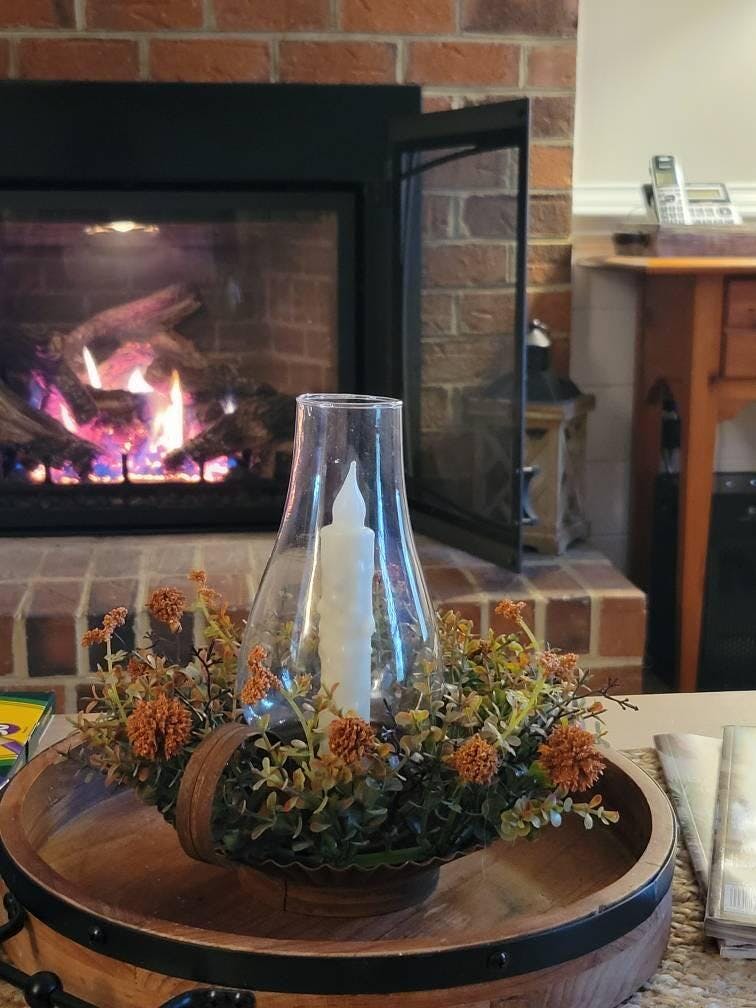 Bring the beauty of autumn into your home with this Orange Eucalyptus and Hops Candle Ring or Wreath. Its 4.5" inner diameter creates the perfect fit to use with a 4" jar or pillar candle, or display it as a mini wreath to infuse a seasonal touch of style. With vibrant eucalyptus leaves and hops, your home will be looking its best for the autumn season. Candles and accessories not included.