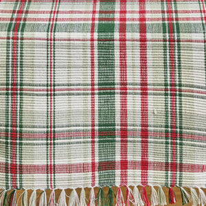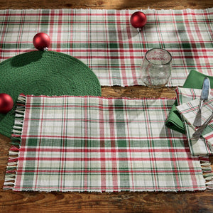 Add a dash of classic holiday charm with this red and green plaid table runner, woven with crisp white accents and finished with festive fringe. The traditional tartan pattern brings warmth and cheer to wood tables, cozy dinners, and seasonal gatherings of all kinds. Whether you're hosting a holiday feast or just adding a little flair to your everyday decor, this runner sets the scene with timeless style. Pair with other coordinating table linens in our collection to create a look that's merry, layered, and full of nostalgic spirit.