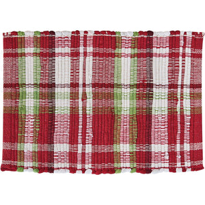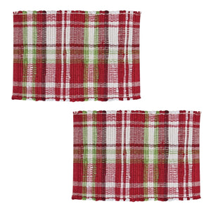 Add rustic charm to your holiday table with this set of two woven placemats, featuring a festive plaid pattern in red, white, green, and hints of brown. The textured weave and warm color palette evoke a cozy, handcrafted feel perfect for seasonal gatherings or everyday winter meals. Pair with coordinating pieces from our tabletop line to create a welcoming and cohesive tablescape. Listing is for a set of 2 placemats only.