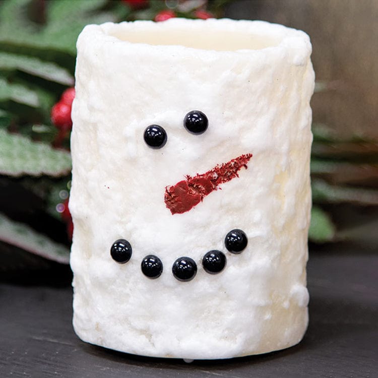 Snowman Bumpy White Moving Flame LED Battery Powered Pillar Candle With Timer 6" High