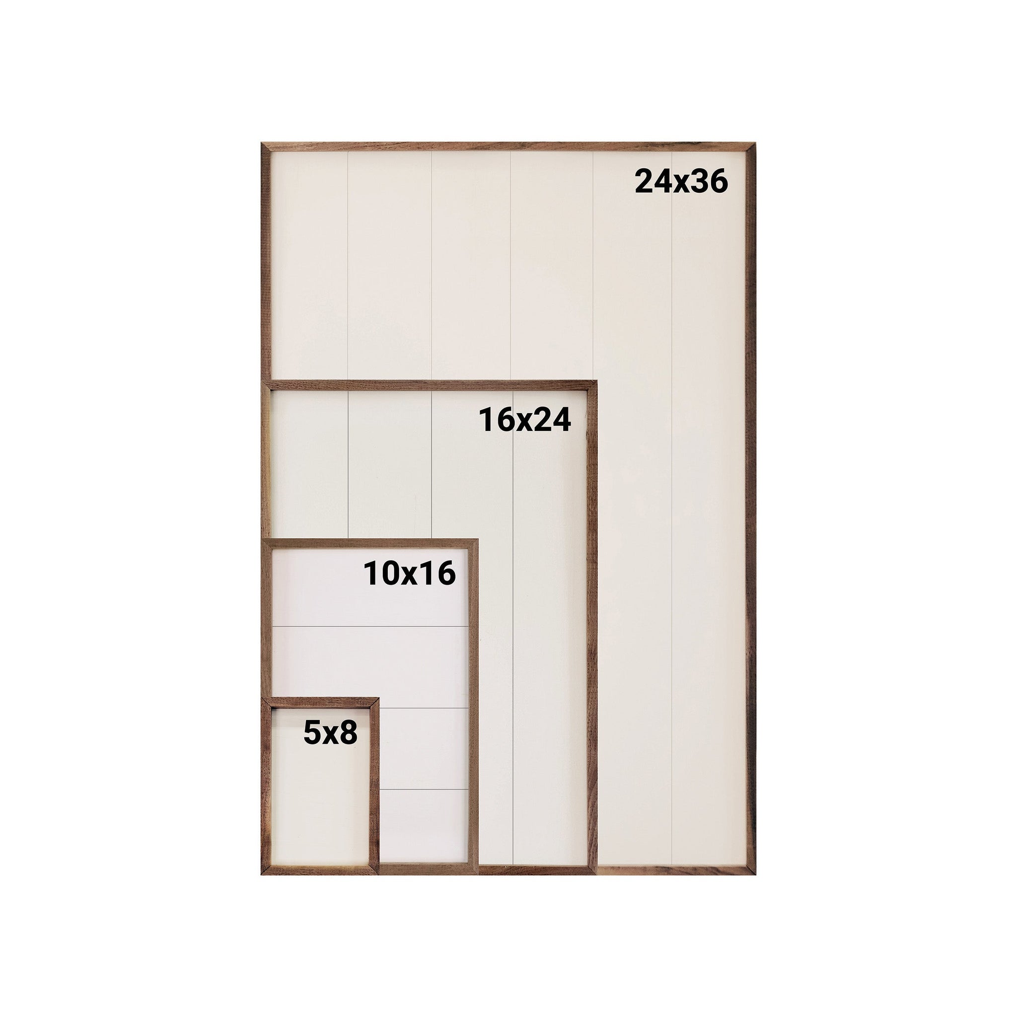 The majority of our signs are free-standing and can be stood up directly by their frame. Small sizes can be hung from the walnut frame lip on the back with one or two screws. Our large sizes (24x24, 30x24, 36x12, 36x18, 36x24, 40x20, 40x32, 48x16) come with a wire hanger and instructions for easy hanging.