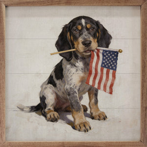 Patriotic Pets Bluetick Coonhound wall sign featuring a detailed print of the Bluetick Coonhound with patriotic elements. Vibrant colors highlight the dog’s distinctive markings, celebrating loyalty and American pride. Perfect for pet lovers and patriotic decor, this artwork adds character and warmth to any space.