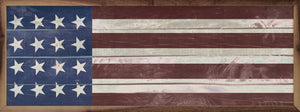 Primitive Flag printed wall sign. Simple, bold design adds rustic charm to any space. Durable print captures vintage flag details for a timeless look. Easy to hang and perfect for farmhouse or country-style decor.