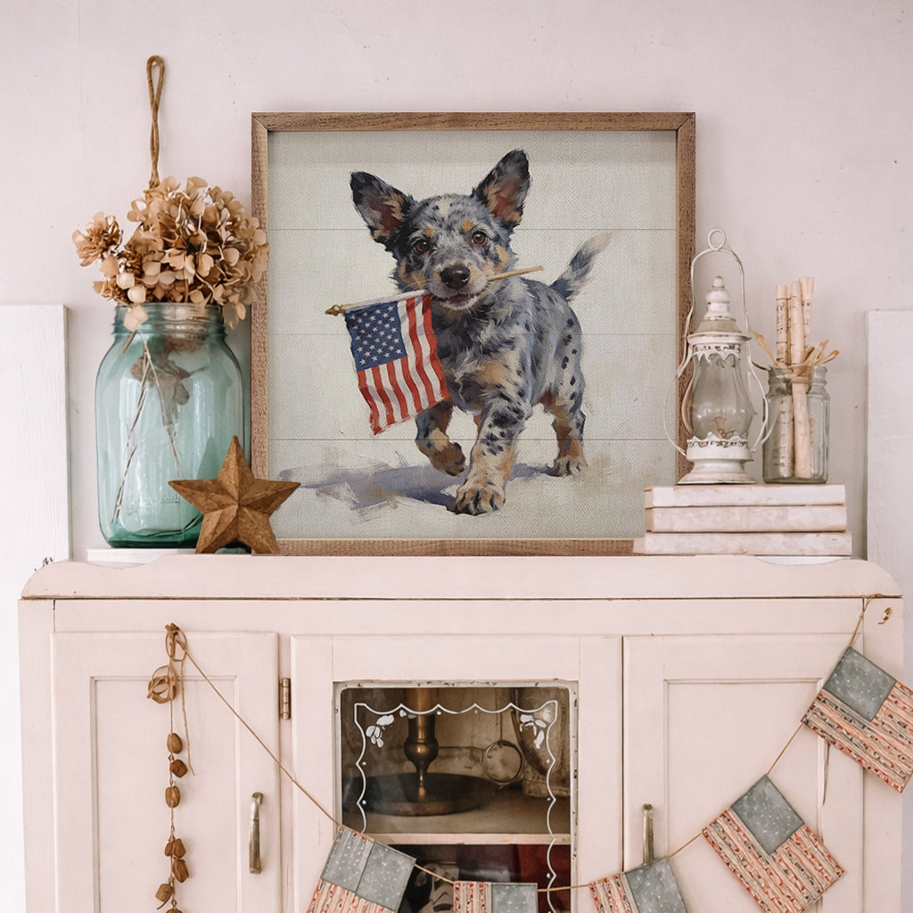 Patriotic Pets Blue Heeler Printed and Framed Wall Sign