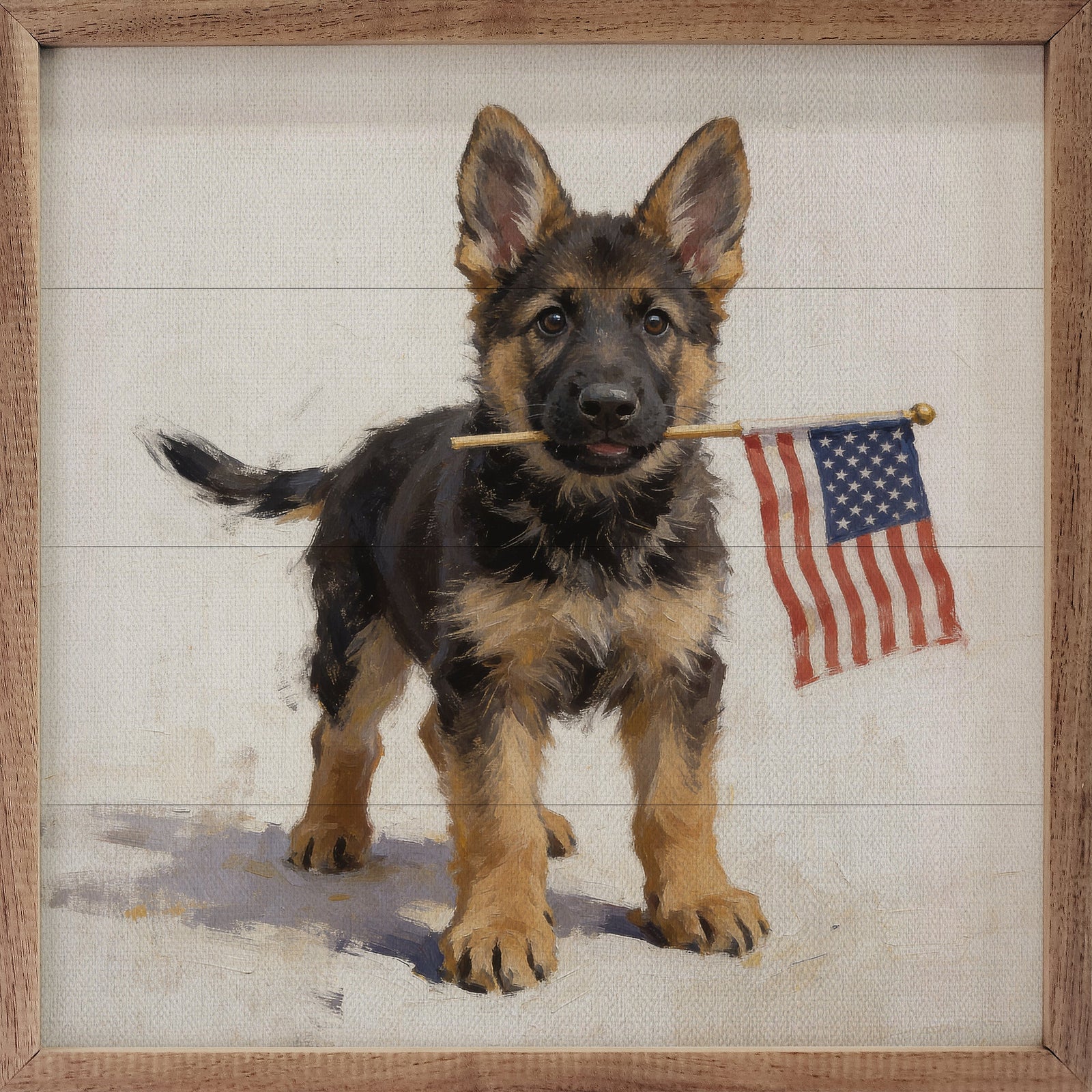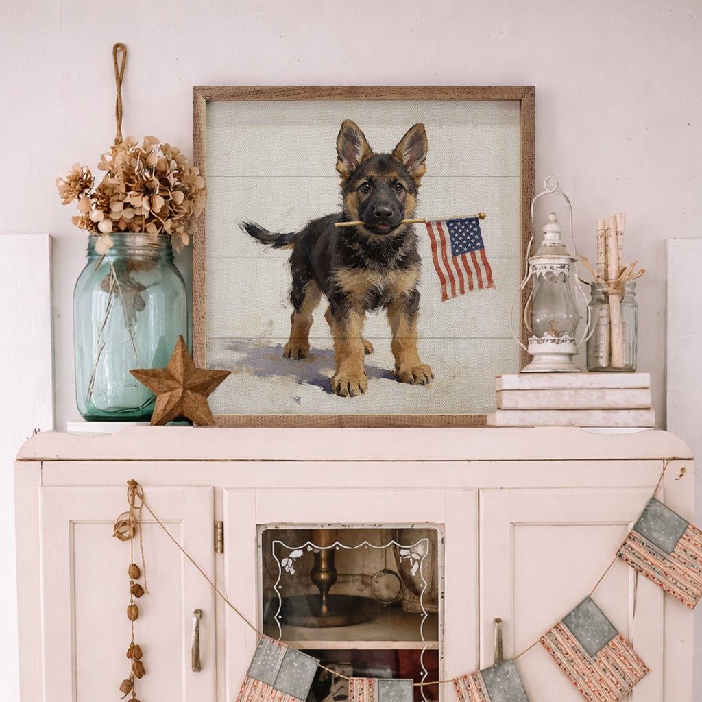 Patriotic Pets German Shepherd Printed and Framed Wall Sign