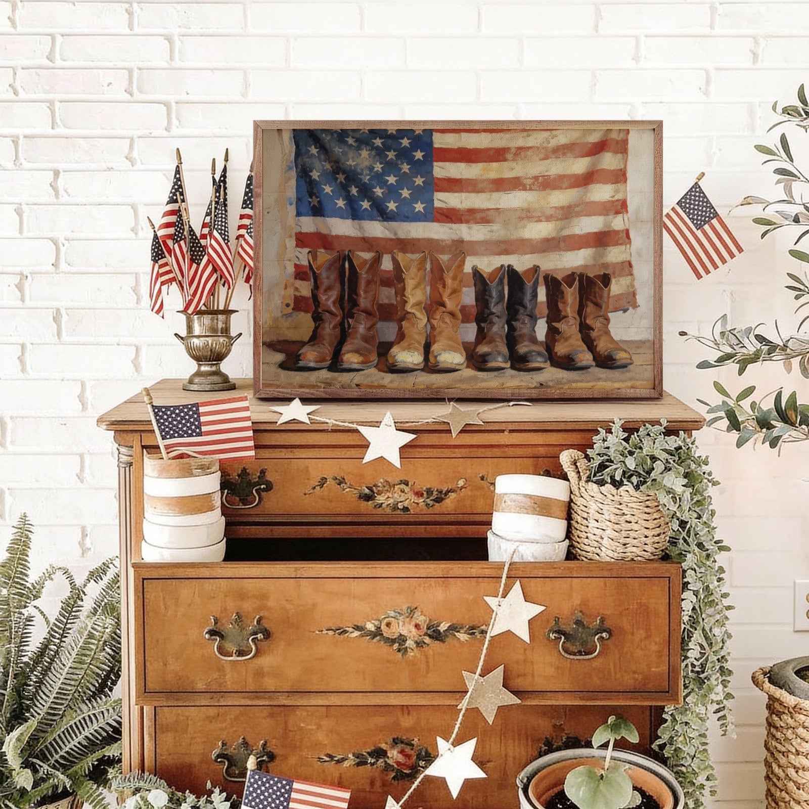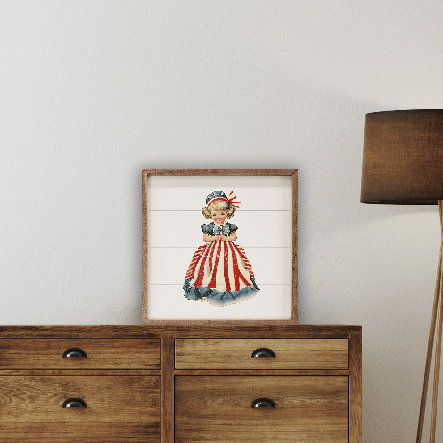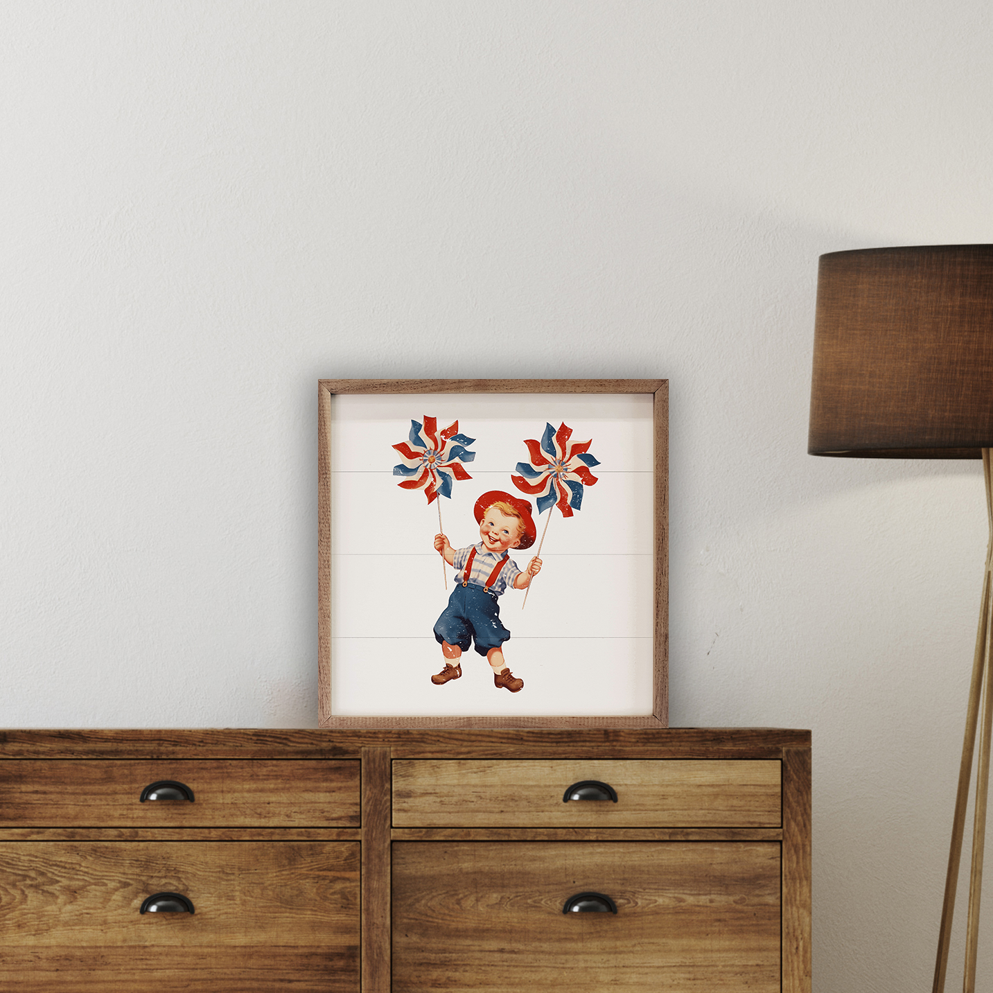 Vintage Patriotic Boy Printed and Framed Wall Sign