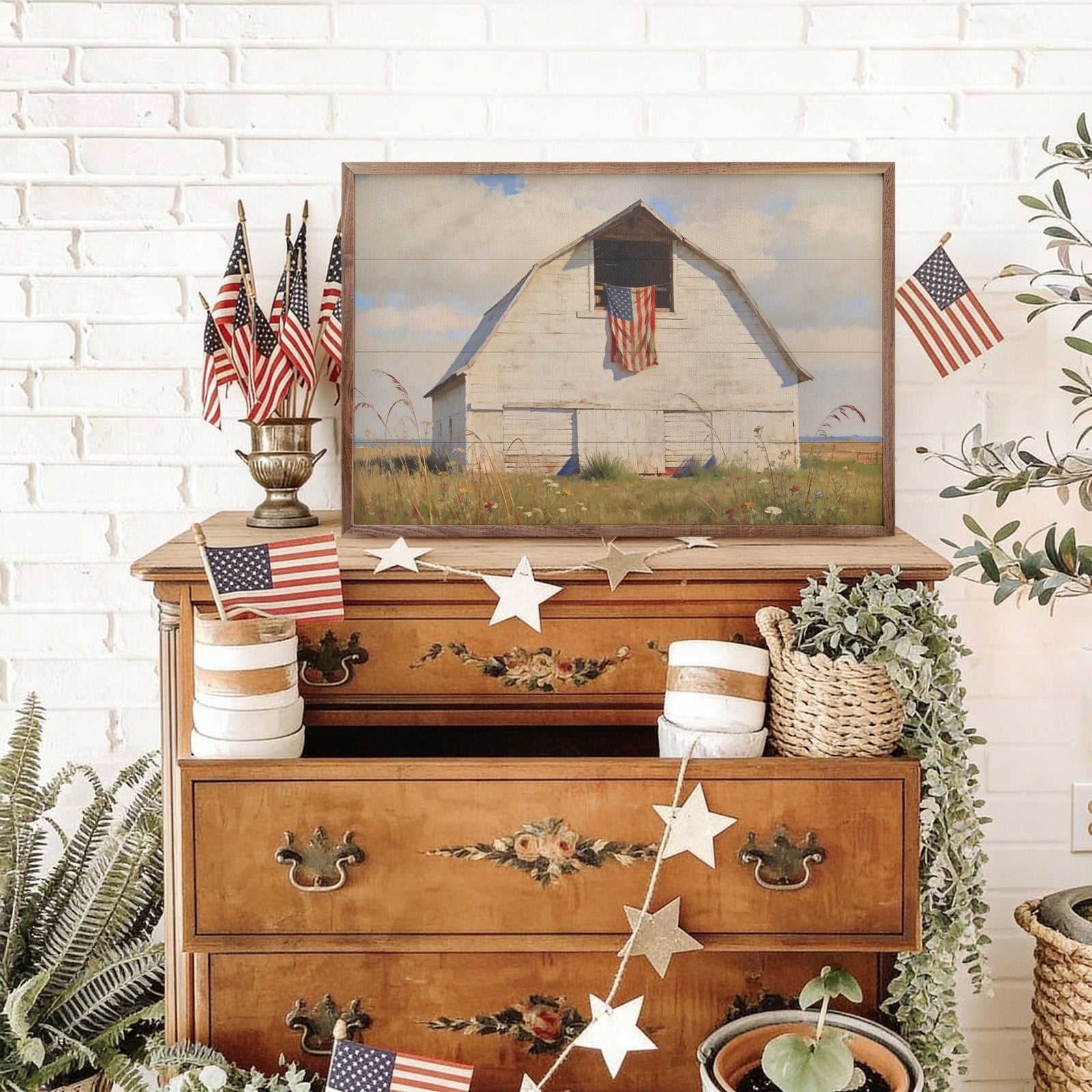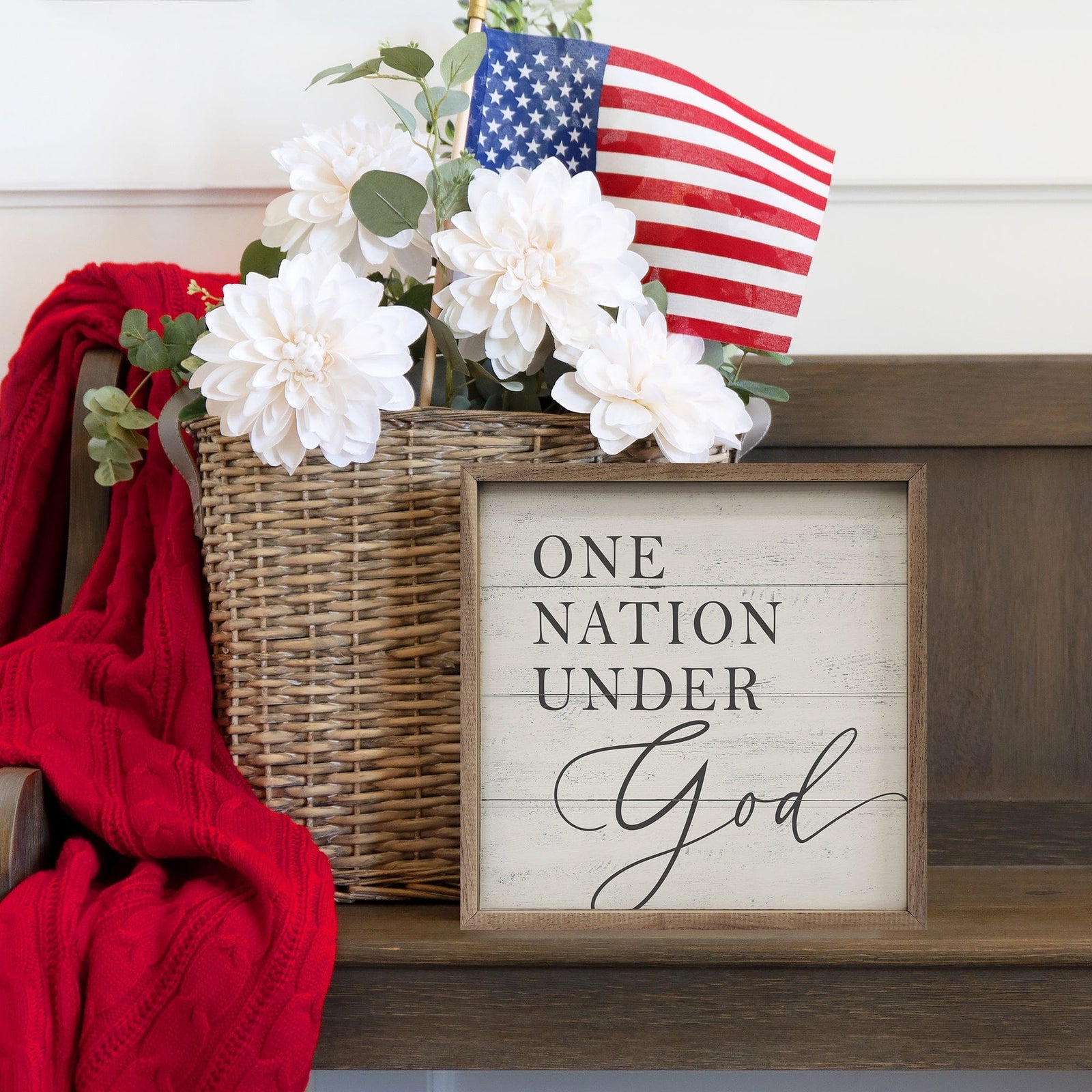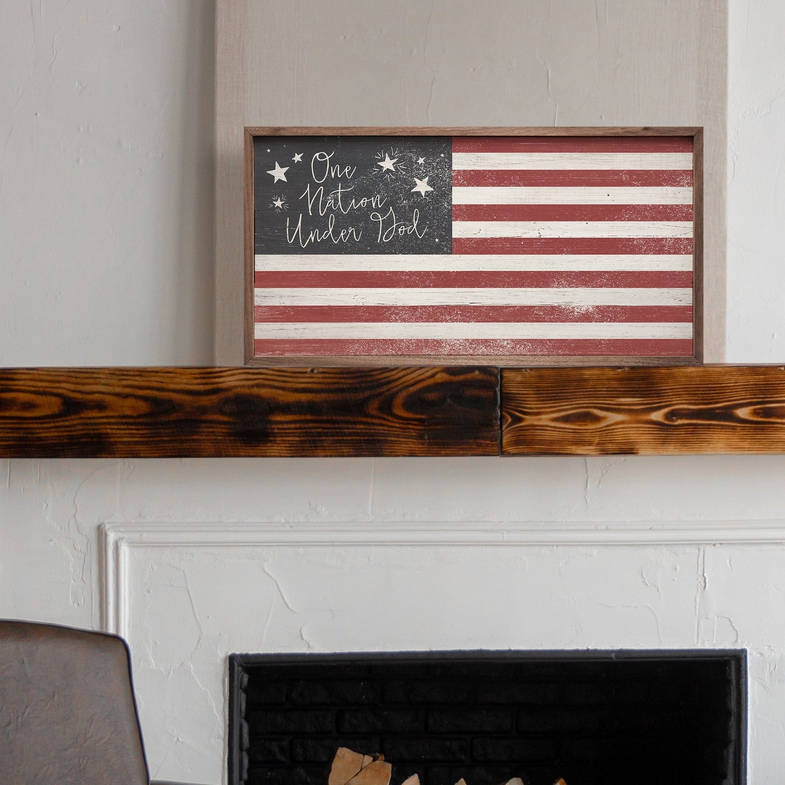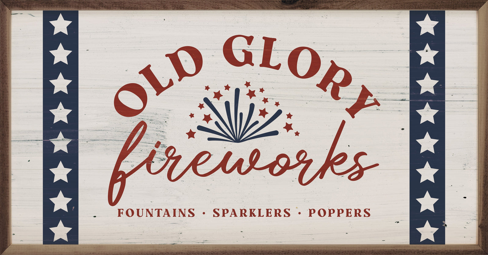 Old Glory Fireworks Whitewash Printed and Framed Wall Sign