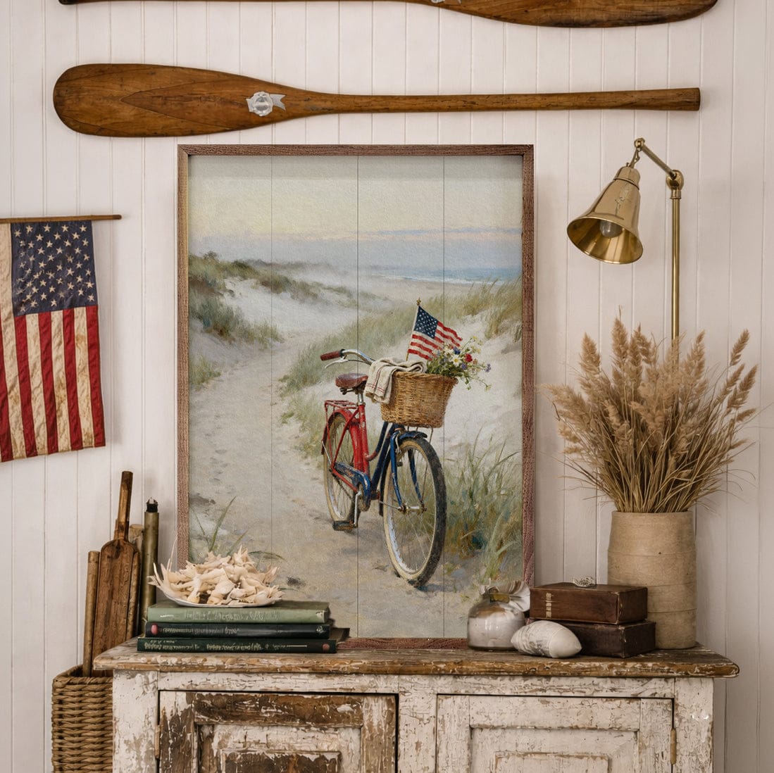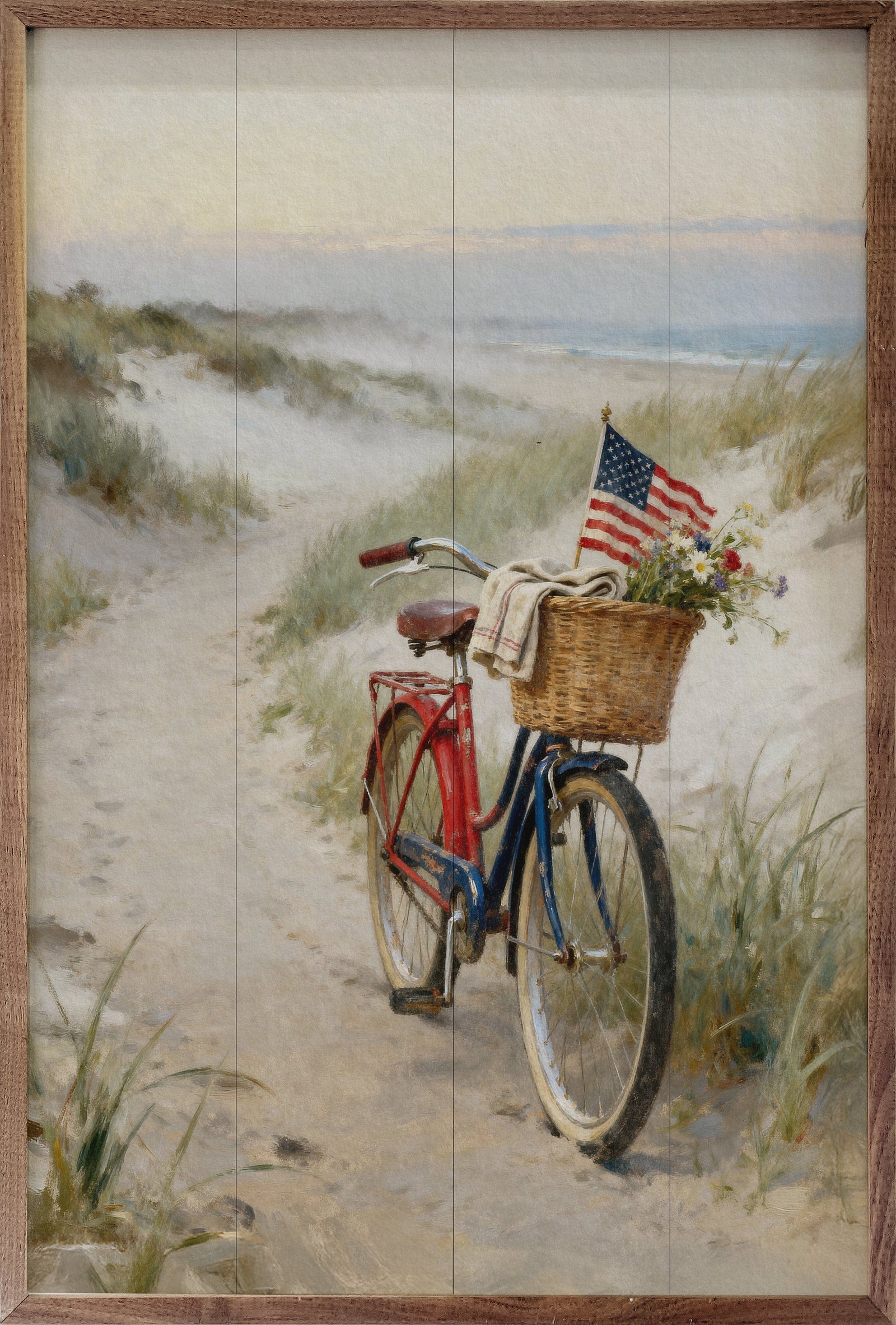 Patriotic Bike On The Coast Printed and Framed Wall Sign