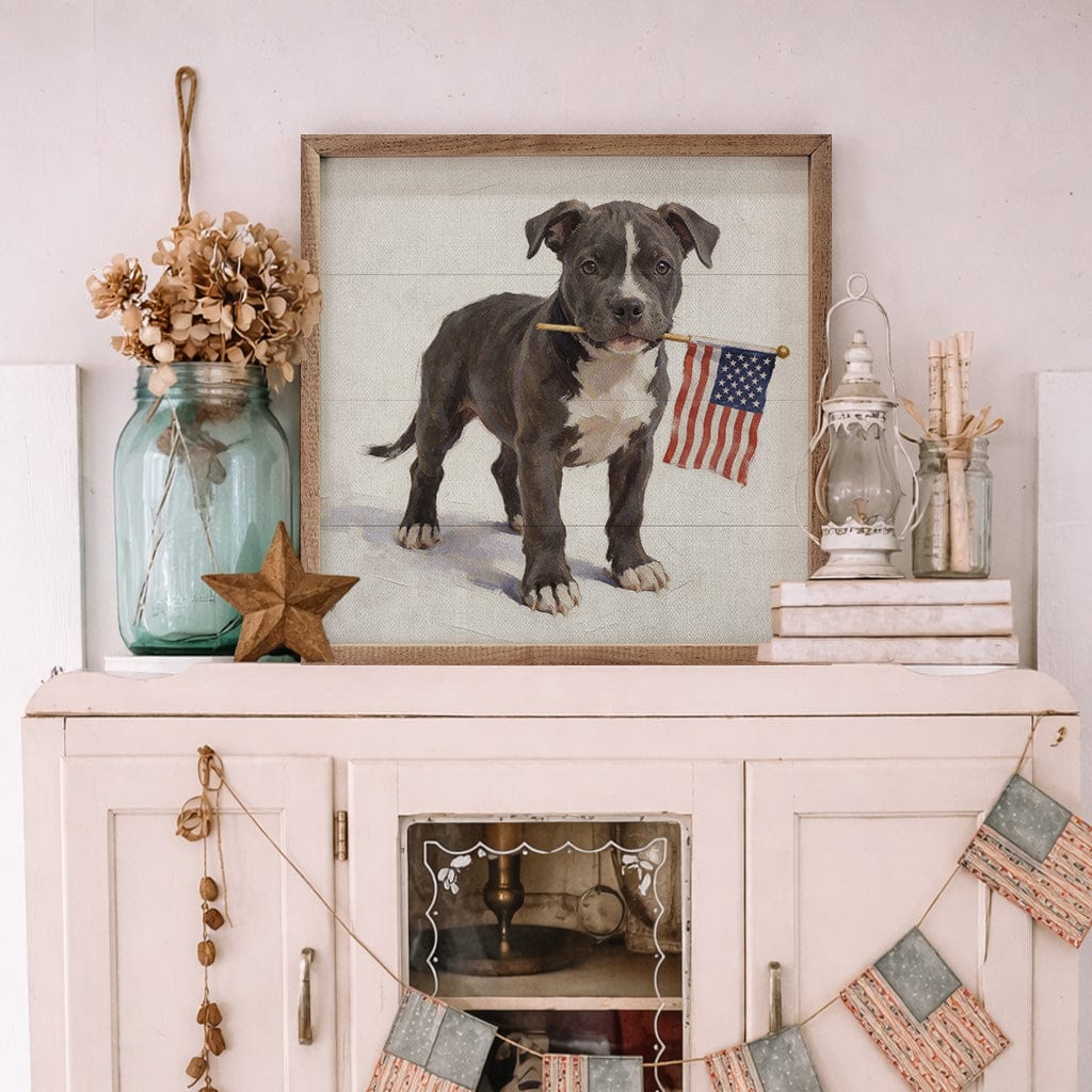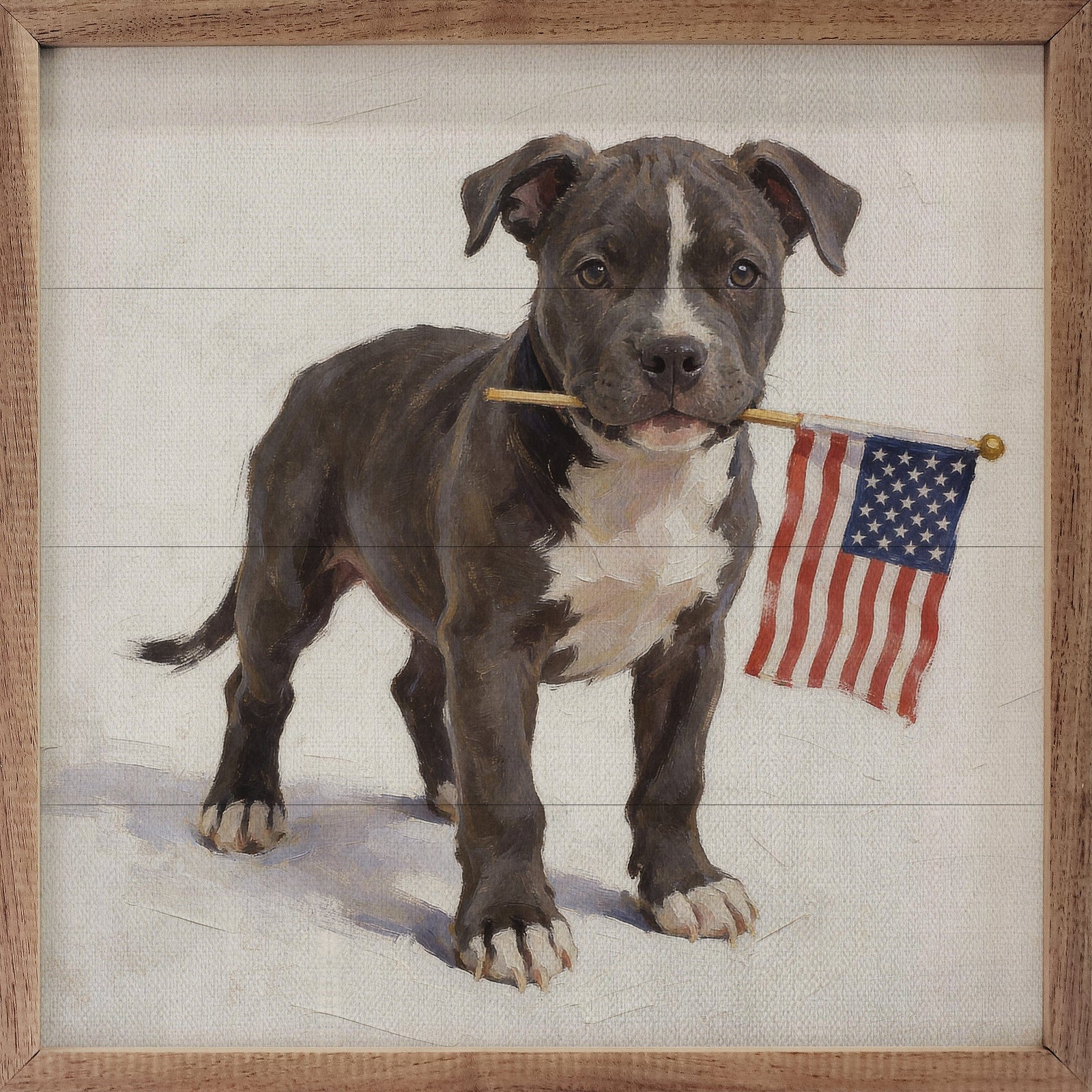 Patriotic Pets American Pit Bull Terrier Printed and Framed Wall Sign
