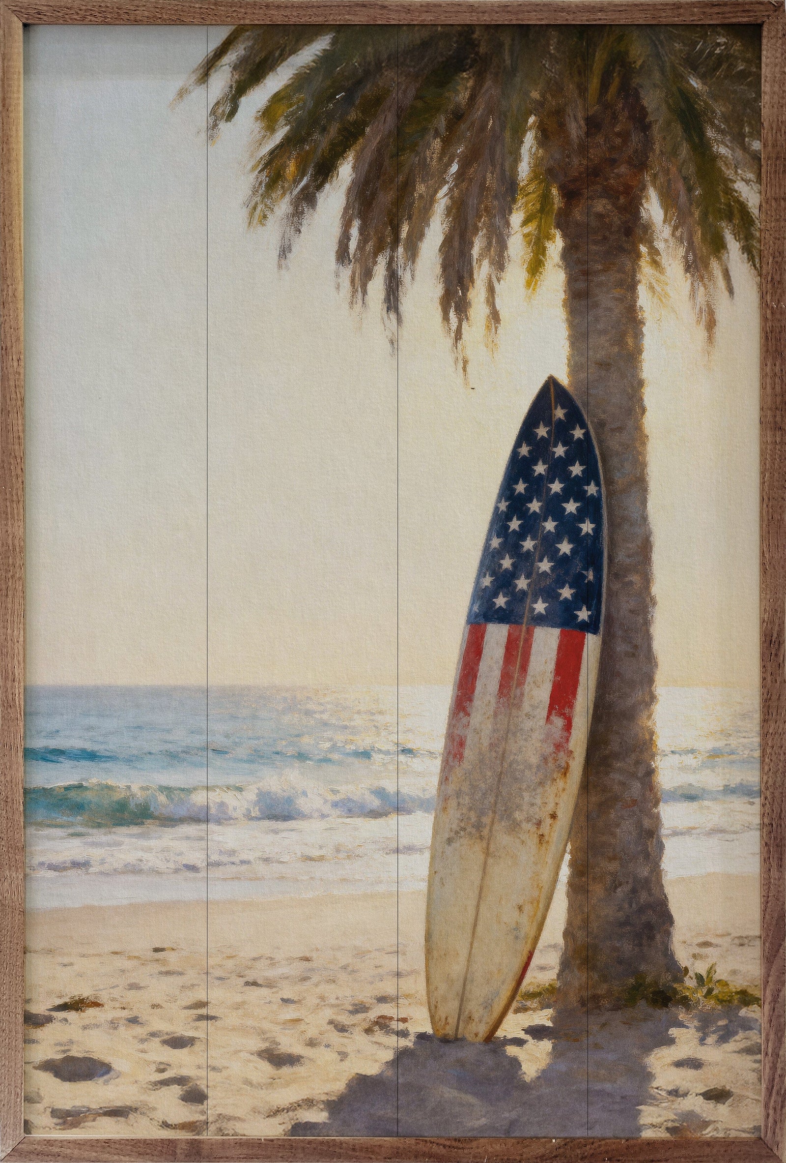 Patriotic Surfboard Beach Printed and Framed Wall Sign