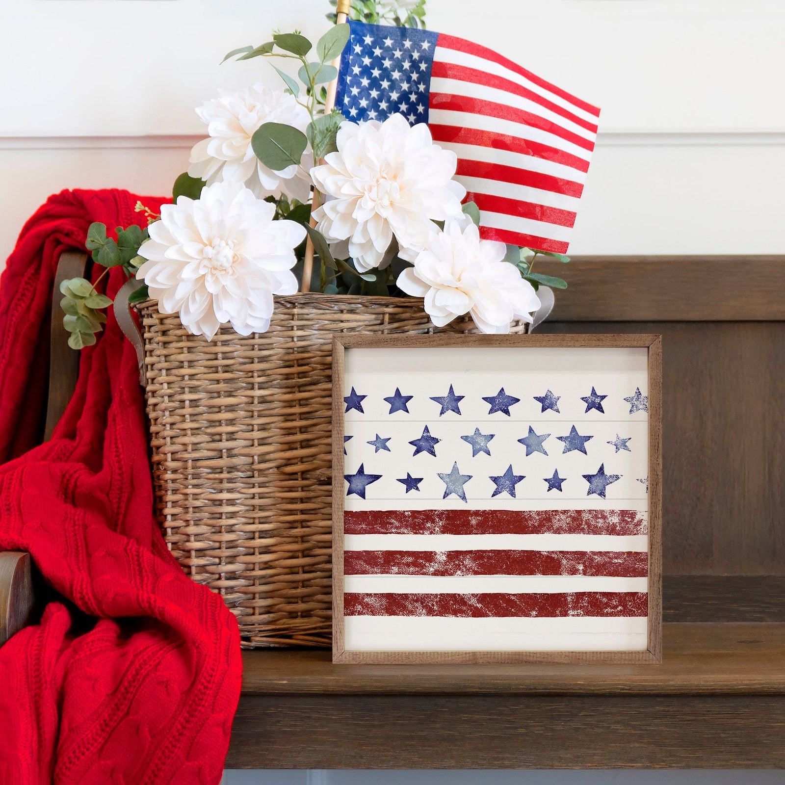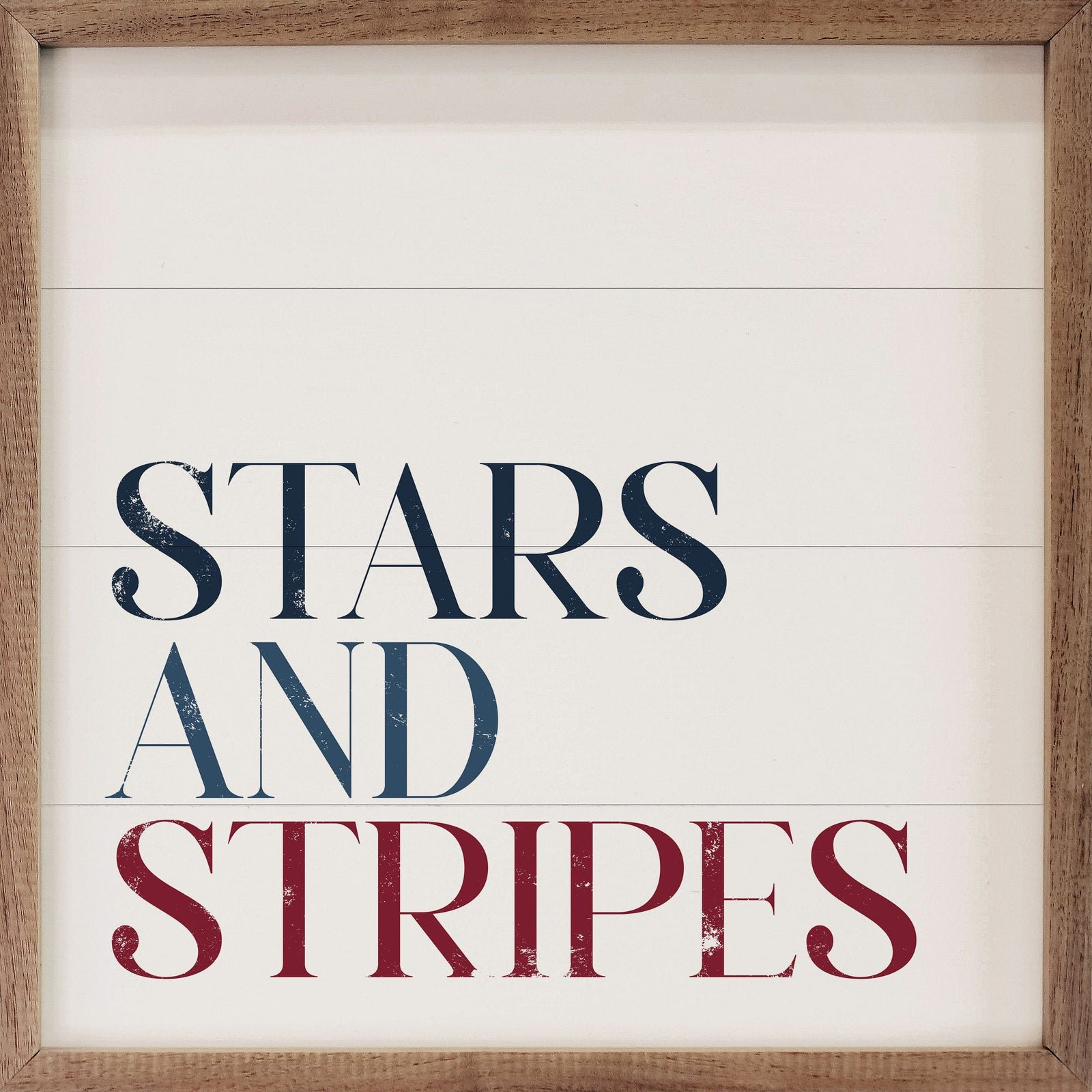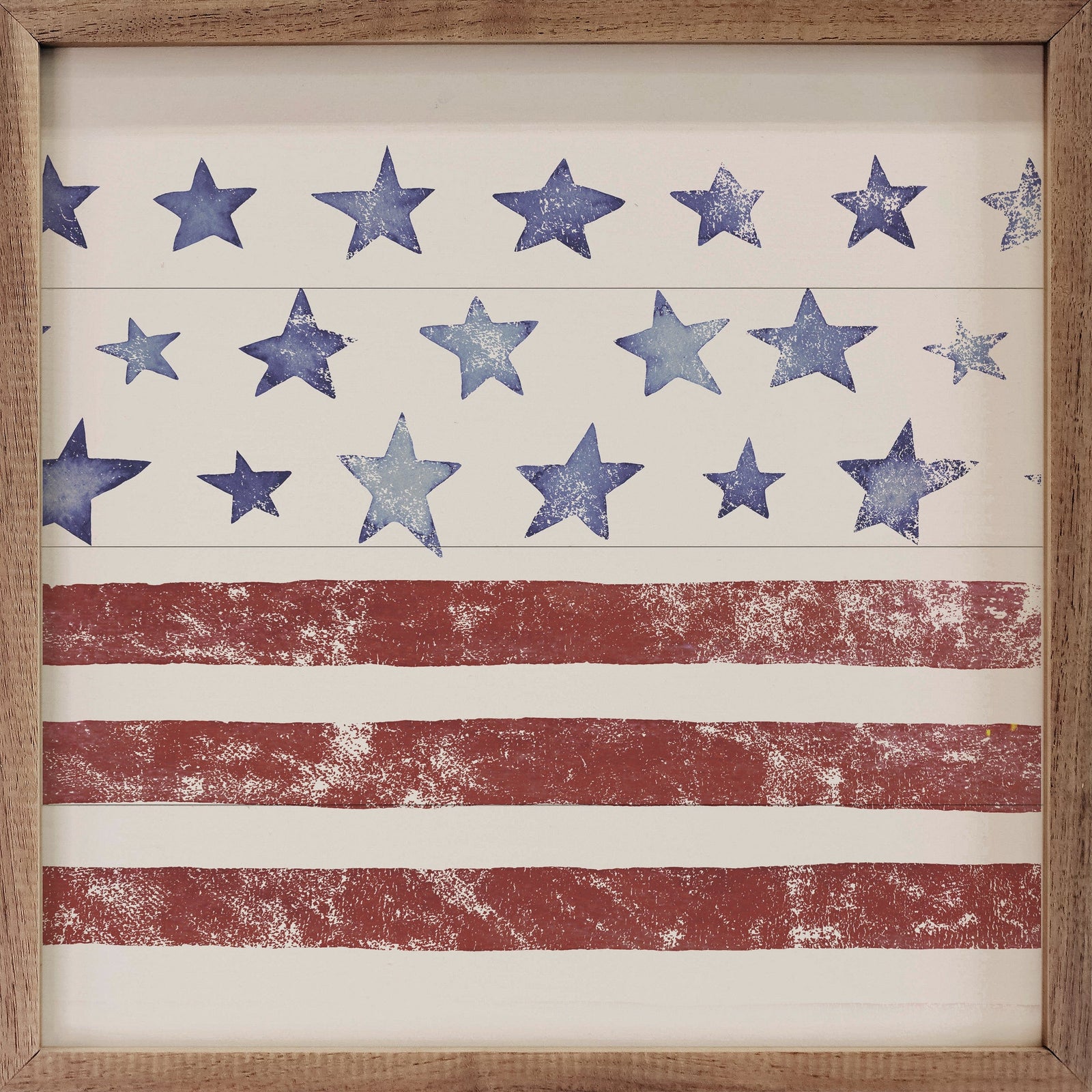 Stars And Stripes Words White Printed and Framed Wall Sign