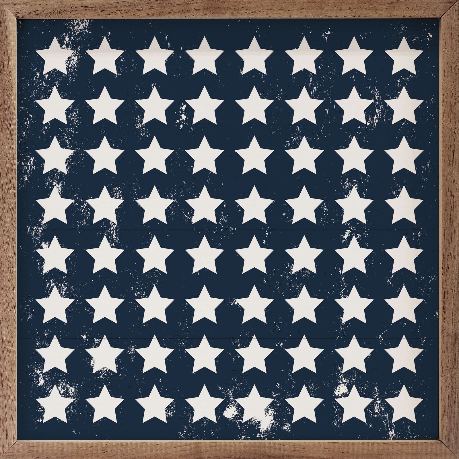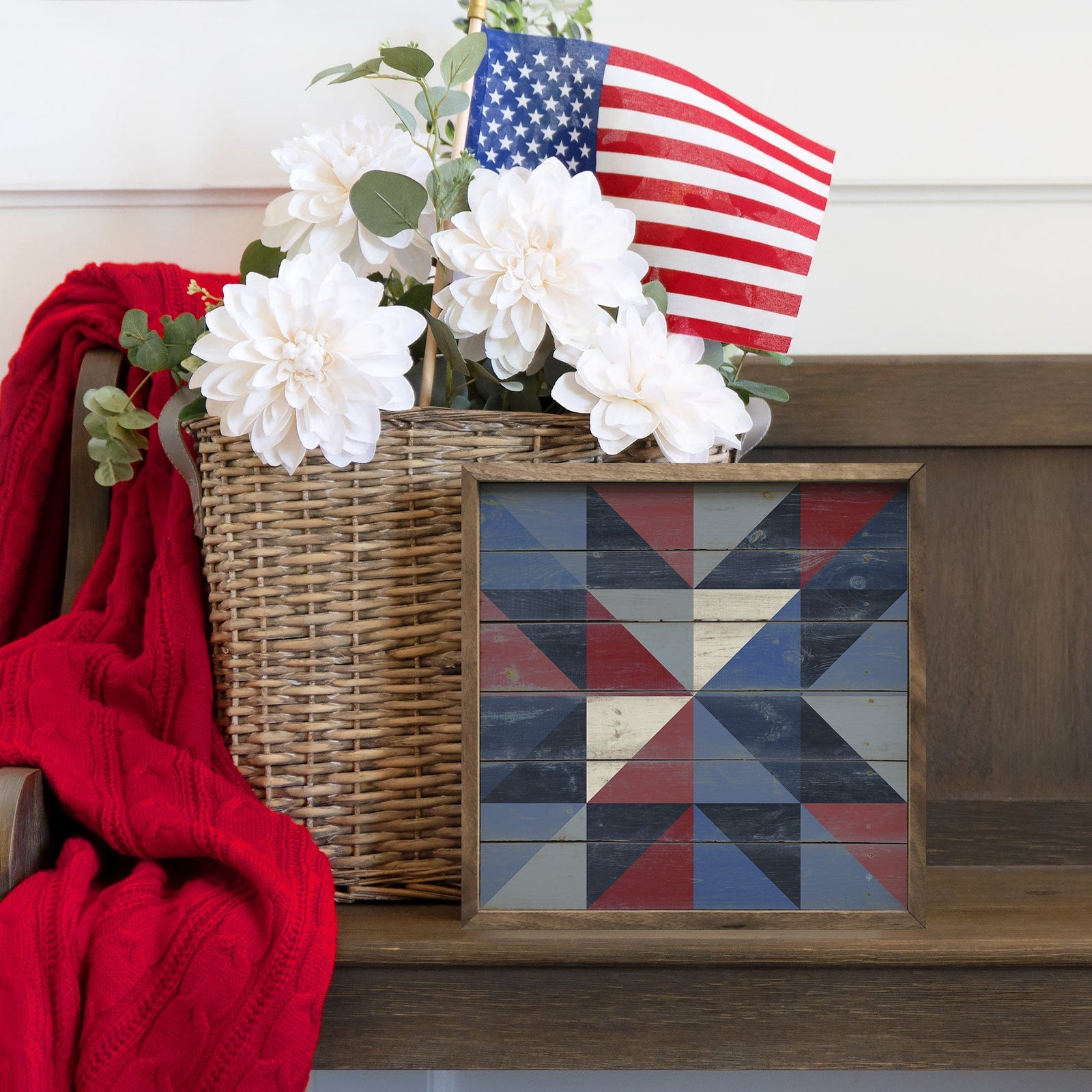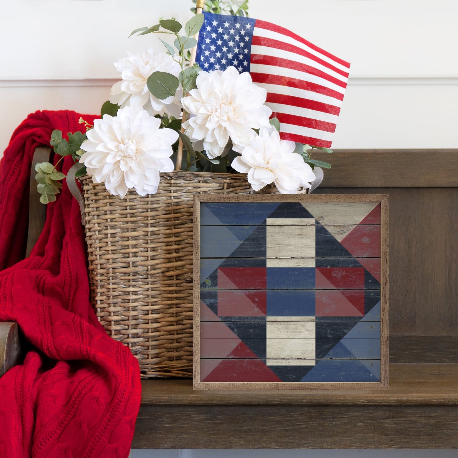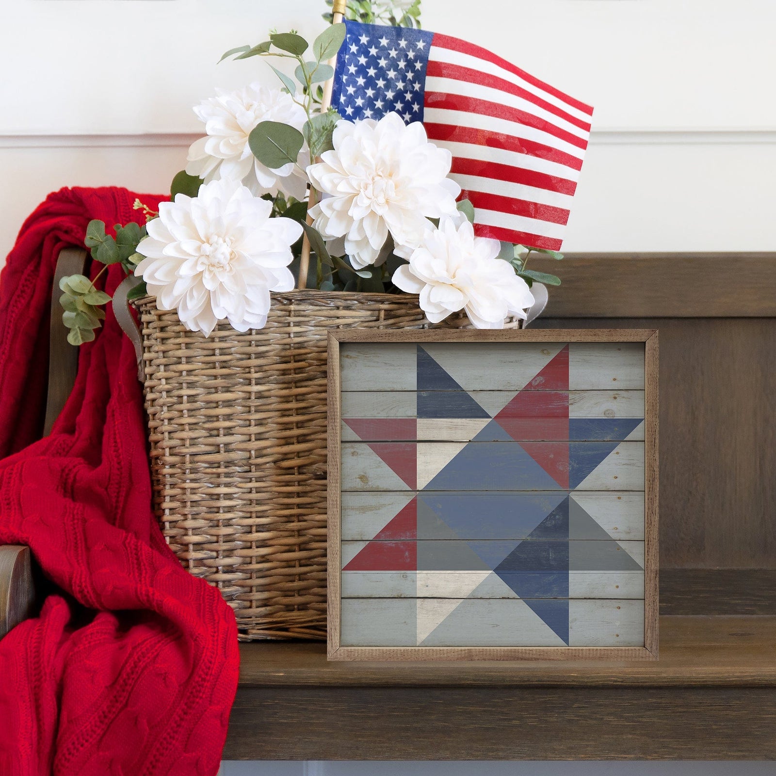 Quilt Festive Americana Star Printed and Framed Wall Sign