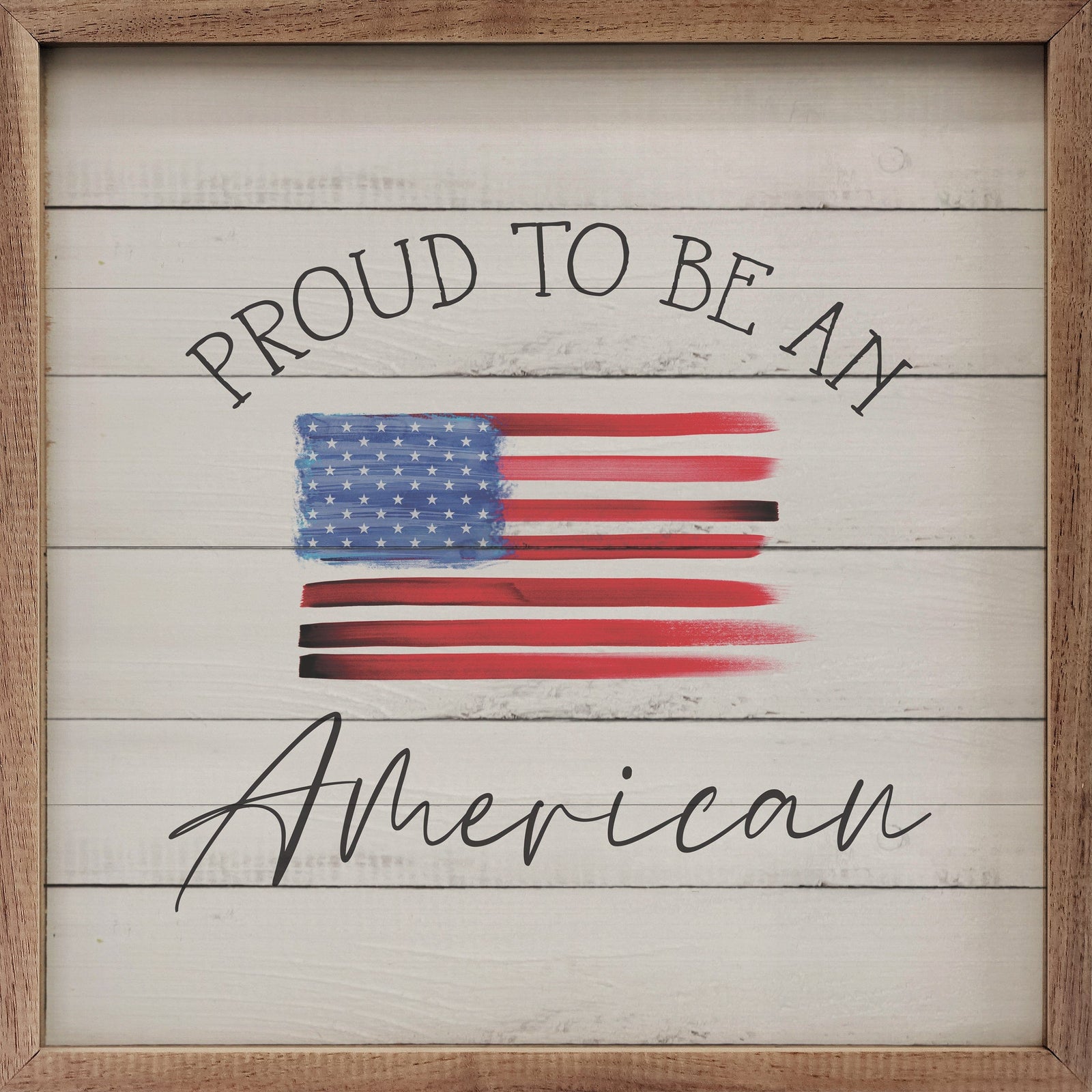 Proud To Be An American Flag Whitewash Printed and Framed Wall Sign