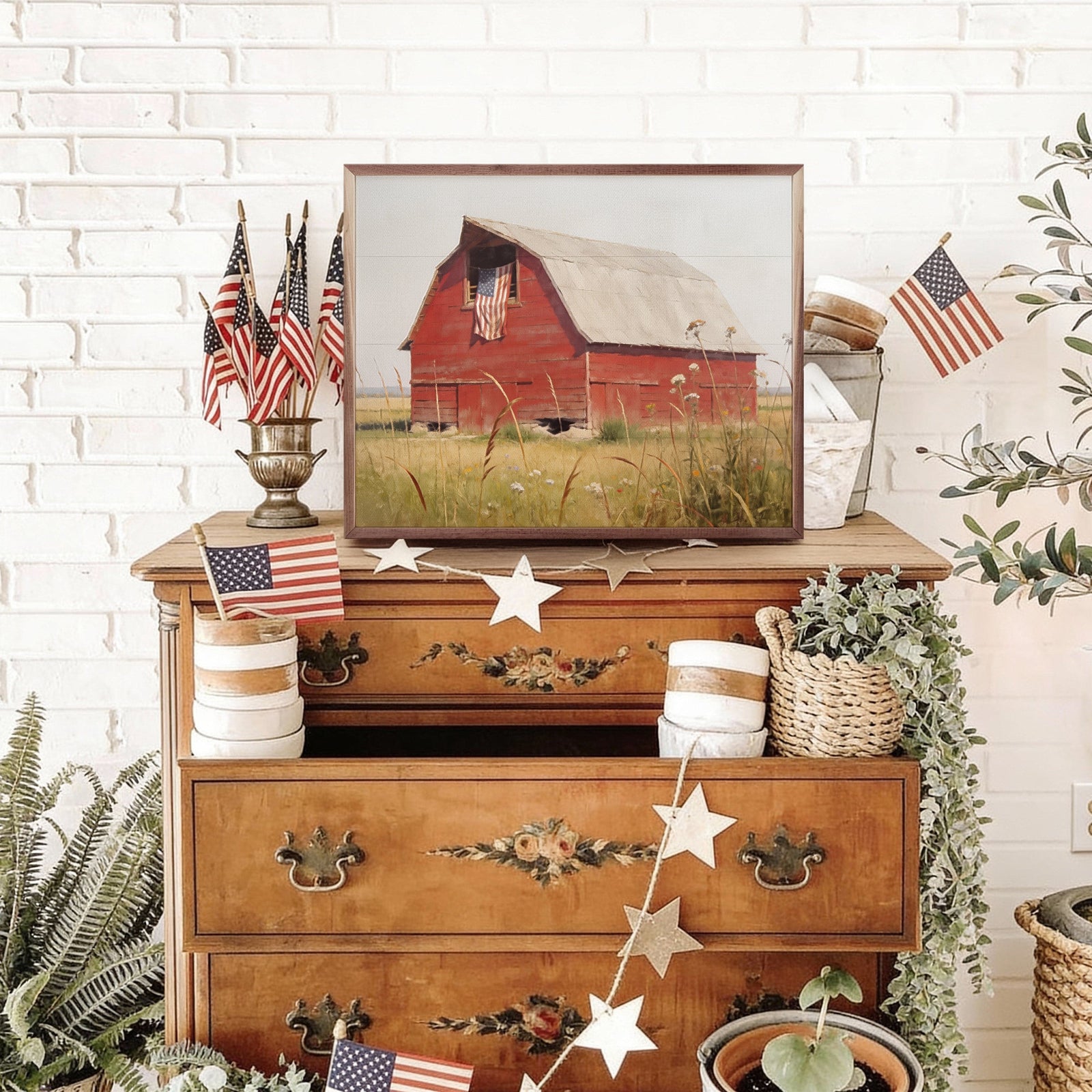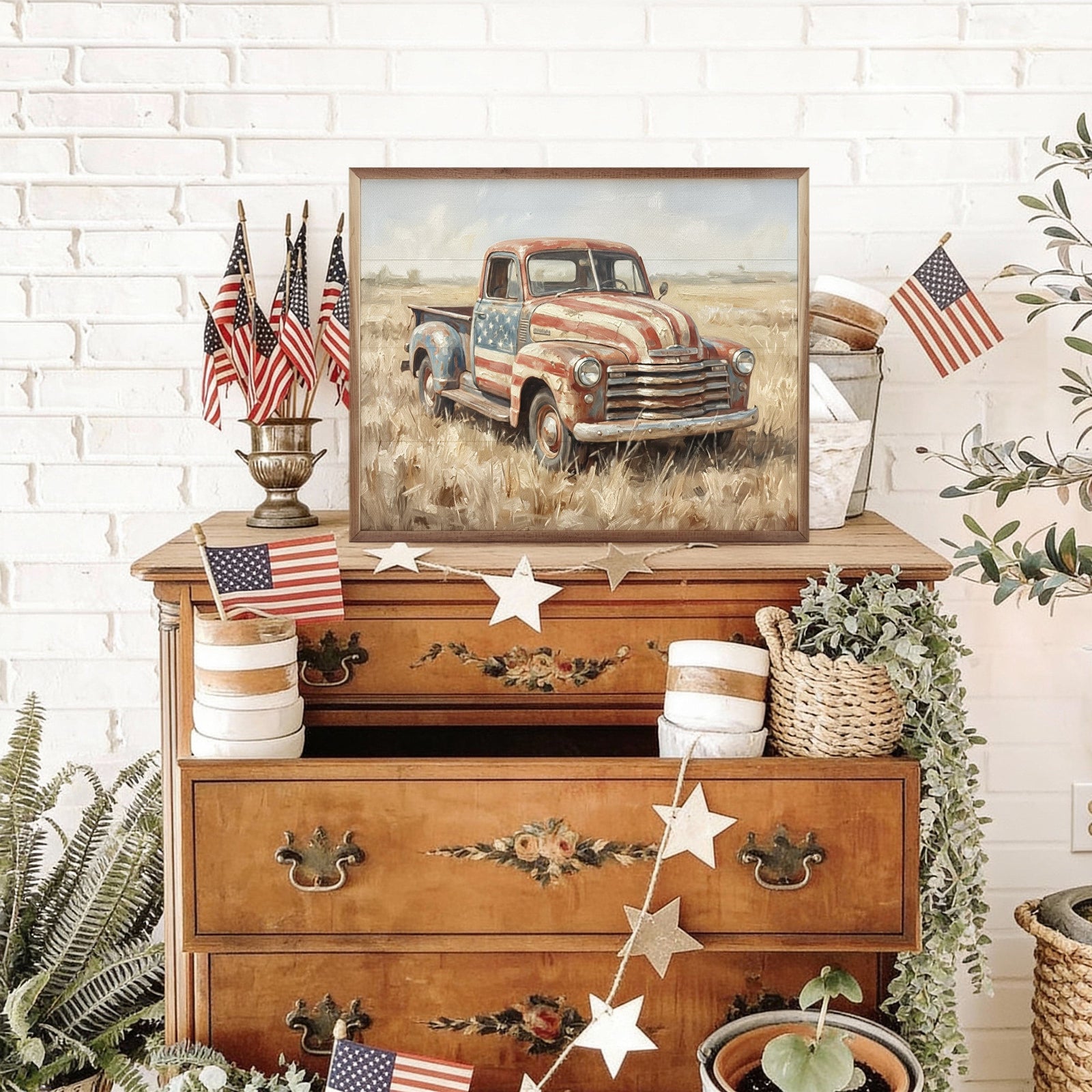 Rustic Americana Flag Truck Printed and Framed Wall Sign