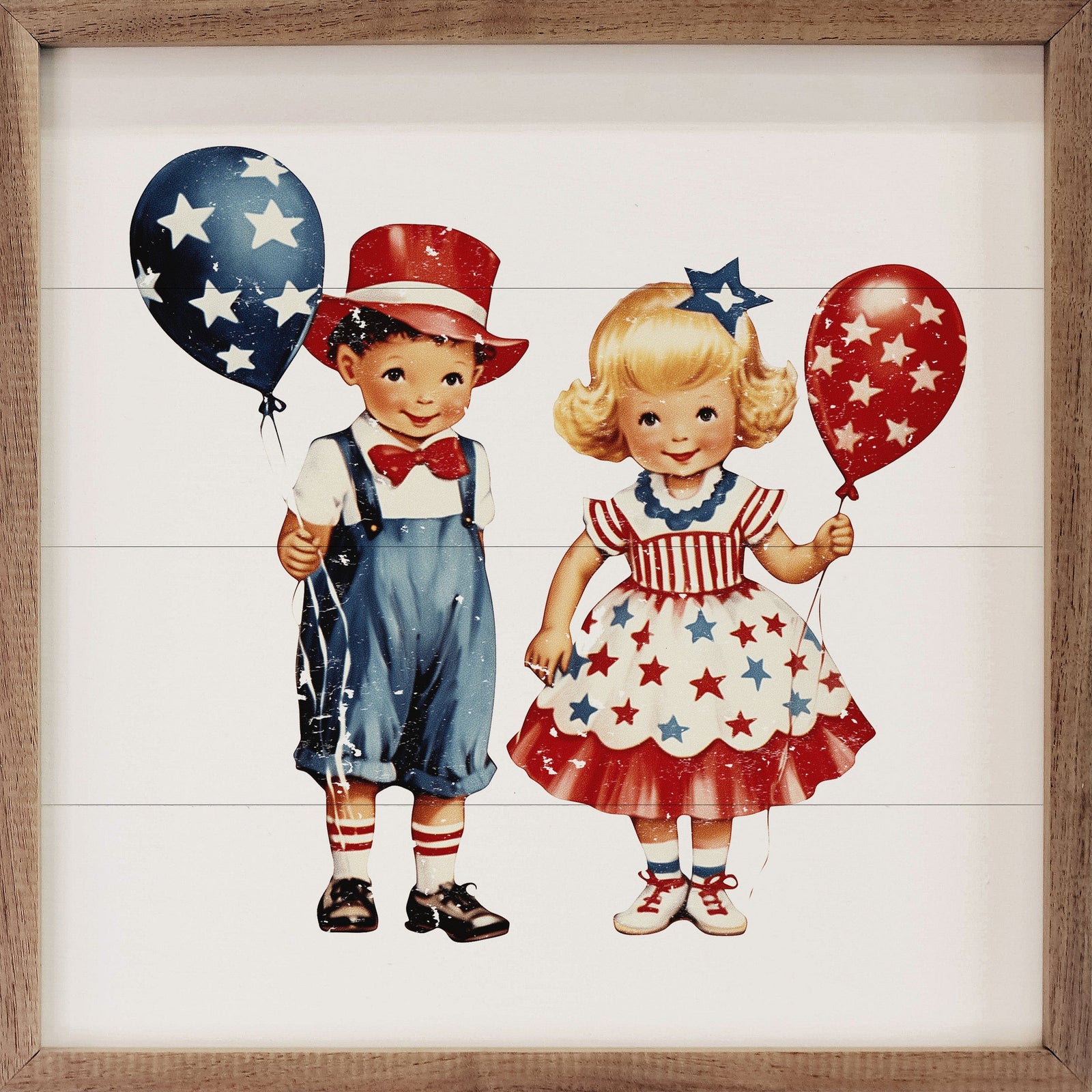 Vintage Fourth Of July Kids Printed and Framed Wall Sign