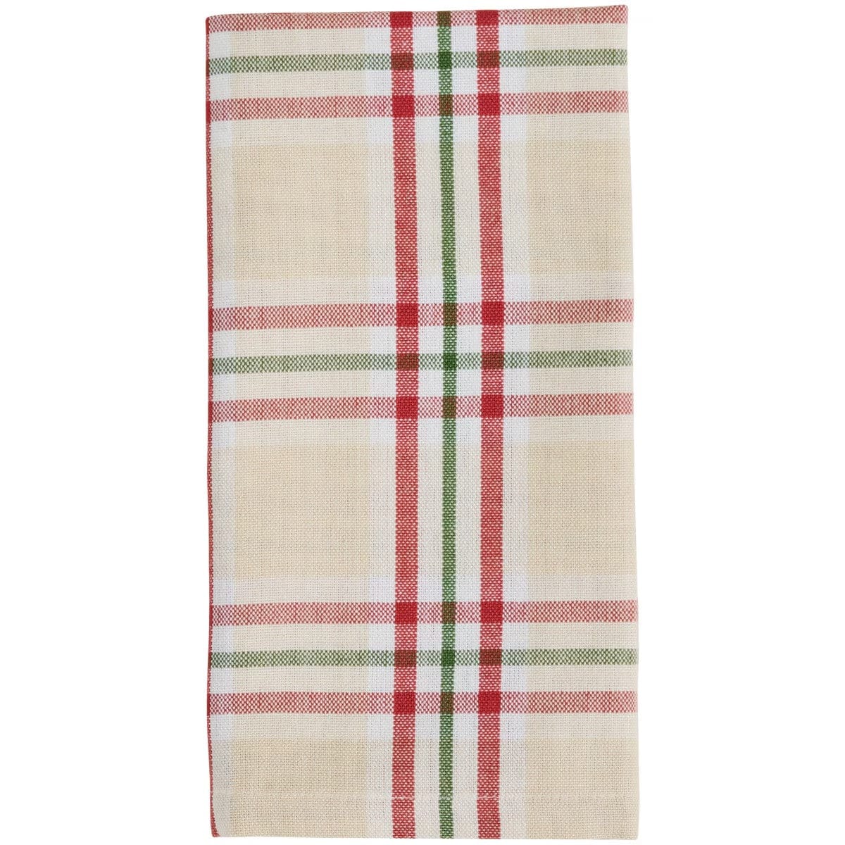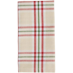 This set of 2 napkins features a warm, classic plaid pattern perfect for seasonal dining. The design is set against a soft beige background, accented with crisp red, green, and white stripes woven into a timeless check. Made from durable fabric, these napkins combine style and practicality, offering a reusable option for both everyday meals and special gatherings. Their versatile look works beautifully with rustic, farmhouse, or holiday-inspired table settings. Perfect for family dinners, festive celebrations, or casual entertaining, these napkins add charm and function to your dining experience while keeping your table setting polished and inviting. Listing is for a set of 2 napkins only.