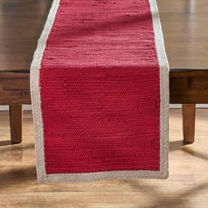 Add a pop of festive charm with this red woven table runner, trimmed in soft beige and full of cozy texture. The tight weave and bold color make it a standout piece for holiday dinners, seasonal centerpieces, or everyday meals that need a little extra warmth. Whether you're layering it over rustic wood or pairing it with candlelight and greenery, this runner brings instant cheer to your table. Pair with other coordinating table linens in our collection to create a look that's inviting, spirited, and ready to celebrate.