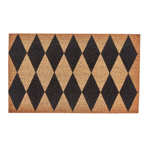 Welcome guests with timeless style using this classic doormat. Designed with a bold black harlequin diamond pattern against a natural coir background, it brings both charm and durability to your entryway. Made from natural coir fibers, the mat is tough on dirt and mud while maintaining a clean, polished look. Its neutral colors make it versatile enough to complement seasonal decor or everyday use. Perfect for placing at your front door, back porch, or patio entrance, this doormat keeps your home tidy while adding a touch of farmhouse-inspired elegance. Made from natural fibers, hand printed with colorfast non-toxic dyes. Durable, mildew and skid resistant. Natural coir fibers.