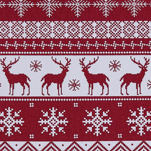 Add a cozy Nordic touch to your holiday table with this festive runner, inspired by traditional Scandinavian knitwear. Rows of reindeer, snowflakes, and zigzag motifs in classic red and white create a warm, sweater-weather vibe that's perfect for Christmas dinners, cookie swaps, or fireside gatherings. The symmetrical pattern adds structure and charm, while the soft textile brings comfort to your seasonal setting. Pair it with other coordinating table linens in our collection to create a look that's nostalgic, cheerful, and full of holiday spirit.