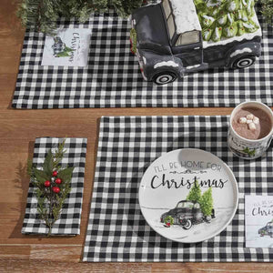 Set a timeless table with this pair of black and white buffalo check napkins. The bold gingham pattern brings classic farmhouse charm, while the neutral palette makes them easy to mix and match with seasonal or everyday linens. Crafted from durable fabric, they're perfect for casual family meals or layered into holiday place settings for a crisp, inviting look. Listing is for a set of 2 napkins only.