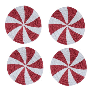 Bring a sweet holiday vibe to your home with this set of 4 peppermint-inspired braided coasters. Featuring a red and white swirl design reminiscent of classic candy treats, these round coasters add a cheerful pop of color to your table while protecting surfaces from moisture and heat. Made from durable, tightly woven jute, they're perfect for use in any room-from kitchen counters to coffee tables. Ideal for festive entertaining or everyday use throughout the winter season, these coasters combine playful holiday charm with practical function. A fun and functional accent for your farmhouse, cottage, or traditional Christmas decor.