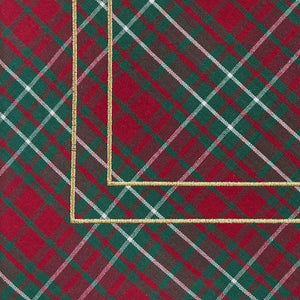 Add a classic holiday touch to your table with this festive tartan runner, woven in rich red, green, and white with golden rectangular borders that frame the design. The traditional plaid pattern brings warmth and structure, while the gold accents add a hint of elegance-perfect for Christmas dinners, seasonal brunches, or cozy fireside gatherings. Pair it with other coordinating table linens in our collection to create a look that's timeless, tailored, and full of holiday spirit.