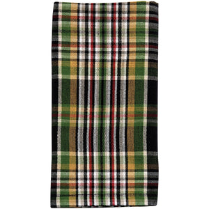 This set of 2 napkins showcases a bold and festive plaid pattern in classic holiday colors. Rich shades of green, red, and gold are accented with crisp black and white for a striking contrast. The traditional tartan design brings a timeless, cozy feel to your table while adding a pop of seasonal charm. Made with durable woven fabric, these napkins are both stylish and practical for holiday gatherings. Perfect for dressing up your Christmas table, layering with solid dinnerware, or adding a festive touch to everyday meals, they bring warmth and cheer to any kitchen or dining setting. Listing is for a set of 2 napkins only.
