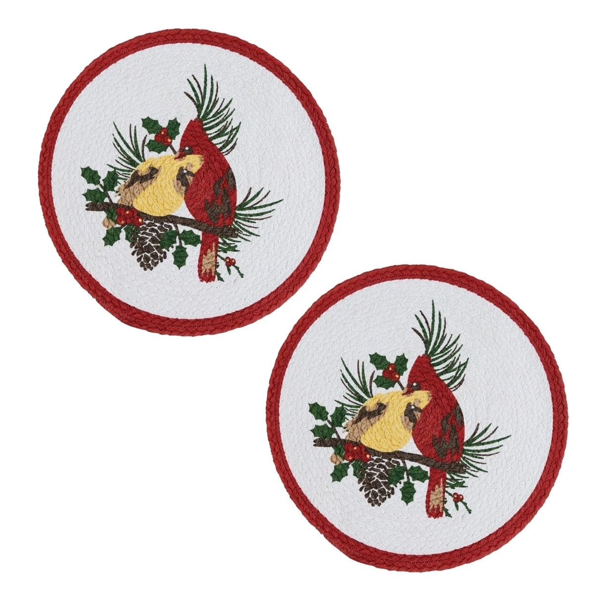Holiday Cardinal Love Braided & Printed Placemat Round Set of 2