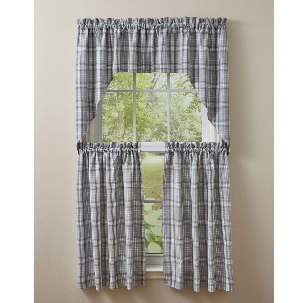 Wicklow Check in Dove Gray Swag Pair 36" Long Unlined