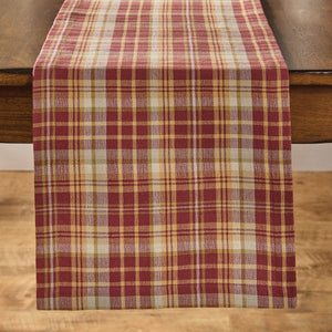 Bring warm, welcoming color to your tabletop with this classic plaid table runner. Featuring a woven pattern in rich shades of burgundy, mustard yellow, olive green, and soft tan, it adds cozy charm to your kitchen or dining room. The timeless design makes it perfect for fall gatherings or everyday rustic style. Whether layered over a wood table or paired with a solid tablecloth, it sets the stage for relaxed, inviting meals. Mix and match with coordinating table linens to create a cohesive and charming seasonal tablescape.